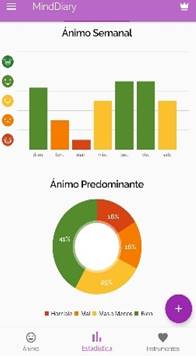 Figura 5. Gráficos estado ánimo del usuario en MindDiary: Diario del ánimo