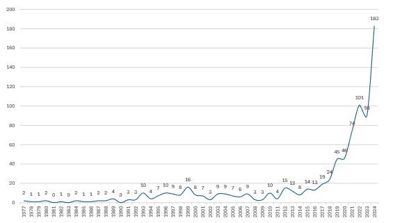 The analysis of annual scientific output (1977-2024) reveals a temporal evolution whose upward trajectory is divided into six major periods, a segmentation that responds both to the volume of publications and to the thematic and technological changes that mark each phase.