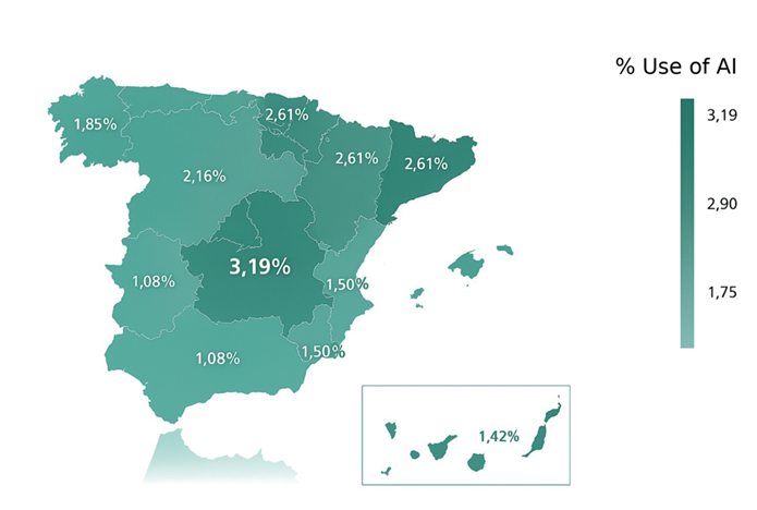 Figure 1. Percentage of artificial intelligence use among Spanish SMEs by autonomous community