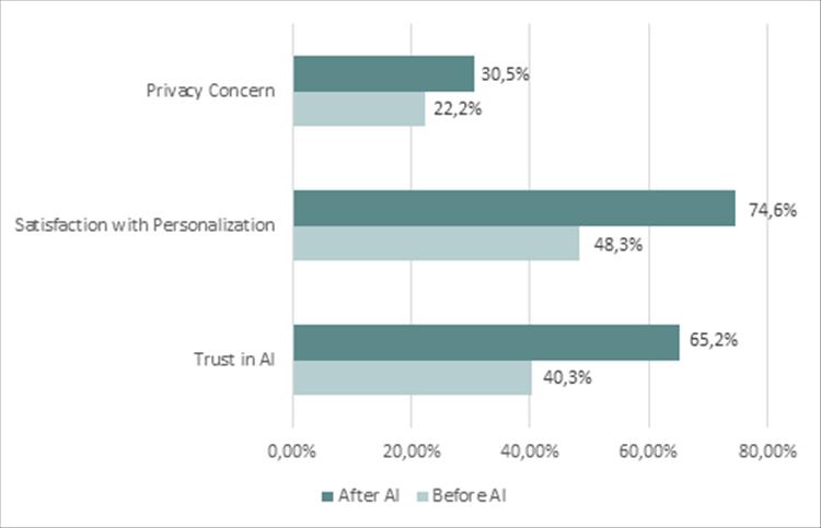 Recent studies confirm the progressive adoption of AI in SMEs and startups. In Spain, the IndesIA Barometer (2024) indicates that more than half of SMEs already use AI in marketing and digital communication. However, this development is not perceived uniformly. Torres-Toukoumidis et al. (2024) note that the social perception of AI varies according to technological familiarity, educational level, and the context of use. Therefore, it is essentialcomn to understand how different groups interpret algorithmic personalization: whether as an enhancement of the user experience or as a threat to privacy. This communicative dimension necessitates the development of strategies that integrate ethics, transparency, and user control, with the goal of fostering digital relationships founded on trust (Eubanks, 2018).