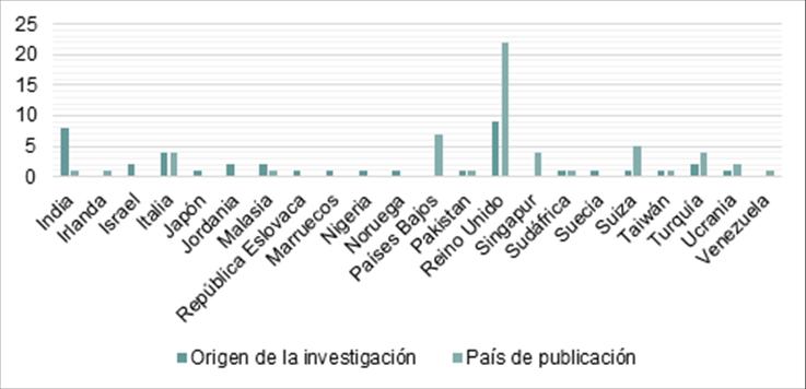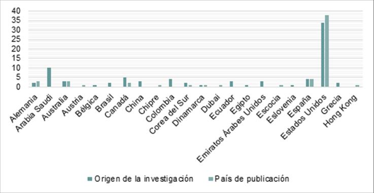 Figura 3. Comparativa entre países de investigación y de publicación de los estudios