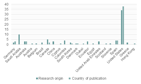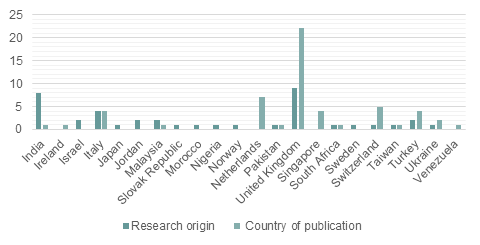Figure 3. Comparison between the countries where the research was conducted and the countries of publication
