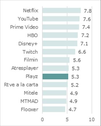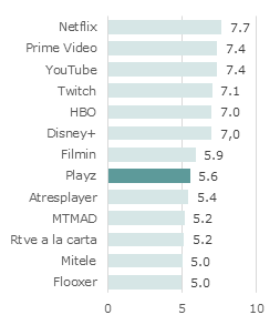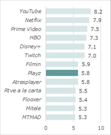 Based on this finding, two major conclusions can be drawn. Firstly, beyond the classification of genres that comprise the public service content of Playz, it is highly regarded and appreciated by the target audience. Secondly, this contrast reveals RTVE's difficulty in reaching this age group. Moreover, this second point highlights the significant limitations that the organisation has in terms of marketing and promotion, as well as its own internal difficulties in developing ambitious projects, which also results from the lack of a clear definition of the platform itself. However, it bears mentioning the fierce competition and promotional efforts that are an essential part of a large, international platform. In this regard, it has been noted that the performance of its direct competitors, MTMAD and Flooxer, is similar to that of Playz, which in some ways highlights the difficulty encountered by the latter in positioning itself with this target audience.